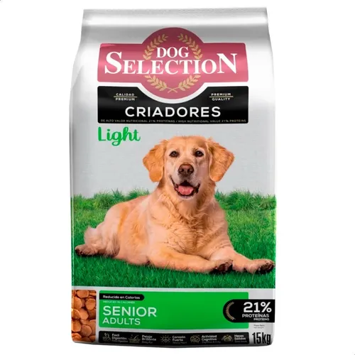 Dog Selection Criadores Senior Light es un alimento formulado especialmente para perros adultos mayores, especialmente aquellos que tienen más de 7 años y llevan un estilo de vida sedentario, lo que les hace propensos al sobrepeso. Esta opción dietética de Dog Selection destaca por su bajo contenido en grasas y calorías, ofreciendo una mezcla equilibrada con un porcentaje de proteína bruta del 21%, garantizando la nutrición óptima que tu mascota necesita. La inclusión de ingredientes como aceite de pollo, arroz y cúrcuma, entre otros, no solo favorece la salud digestiva gracias a su mayor contenido de fibra, sino que también contribuye al bienestar integral de tu perro. Presentado en un práctico envase de 15 kg y disponible en una textura seca, este alimento es ideal para perros de todas las razas y tamaños, asegurando una alimentación sana y deliciosa para tus compañeros peludos.