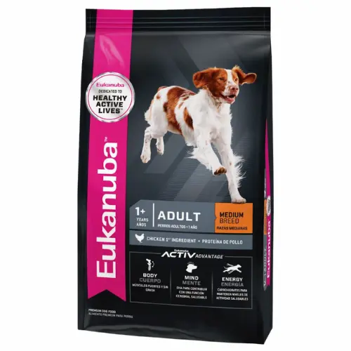 Consiente a tu perro adulto de raza mediana con el delicioso Alimento Eukanuba sabor mix en una práctica bolsa de 15 kg. Este alimento seco de alta calidad, fabricado por Mars Petcare, está especialmente formulado para satisfacer las necesidades nutricionales de tu mascota en su etapa adulta. Con un 25% de proteína bruta, este alimento garantiza el mantenimiento de músculos fuertes y sanos. Además, su aporte de nutrientes incluye un 5.0% de fibra cruda, 8.0% de minerales, 1.50% de calcio y 1.30% de fósforo, asegurando una dieta equilibrada y completa para tu perro. No esperes más y brinda a tu mascota el sabor y la nutrición que merece con Eukanuba