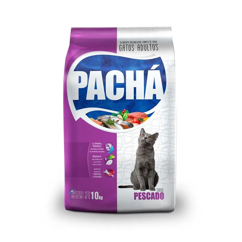 Pachá Gatos ha sido formulado para cumplir los niveles niotricionales establecidos por AAFCO (Asociación Americana de Agentes de Control de Alimentos) para los alimentos destinados a gatos. Tanto en su formulación como en el proceso de elaboración de ha puesto énfasis en cuidar todos los detalles que permitan preservar la excelente palatabilidad, calidad nutricional y salud de su gato. Ingredientes. Harina de carne y hueso, harina de pescado, harina de pollo, aceite de pollo, grasa vacuna, arroz, maíz, gluten de maíz, trigo, salvado de trigo, harinas de soja, aceite vegetal, levadura de cerveza, sal, extracto de yucca shidigera, metionina, taurina; saborizantes: hidrolizado de víceras; antioxidantes: BHT, BHA, TBHQ, acido cítrico, galato de propilo, etoxina; antifúngicos:dipropionato de armonio, ácido propiónico; Colorantes: caramelo, eritrocina, tartrazina, indigotina, amarillo-anaranjado, rojo allura, carmín de cochinilla; núcleo vitaminico mineral: vitaminas A, D3, E, K B1, B2, B6, B12, ácido fólico, ácido nicotínico, pantotenato de calcio, biotina, colina; minerales: cobre, hierro, zinc, yodo, magnesio, selenio. Minerales: zinc, hierro, cobre, yodo, magneso y selenio.