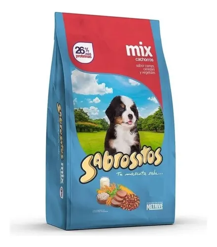 Alimento Sabrositos Cachorros en bolsa de 18 kg, elaborado por Metrive, una marca de confianza en el cuidado de tus mascotas. Este alimento seco está especialmente formulado para perros en etapa de crecimiento, proporcionándoles todos los nutrientes esenciales que necesitan para desarrollarse fuertes y saludables. Con un peso de 18 kg, tendrás suficiente alimento para mantener a tu cachorro satisfecho y feliz durante un buen tiempo. No esperes más y bríndale a tu mascota la nutrición que merece con Sabrositos Cachorros.